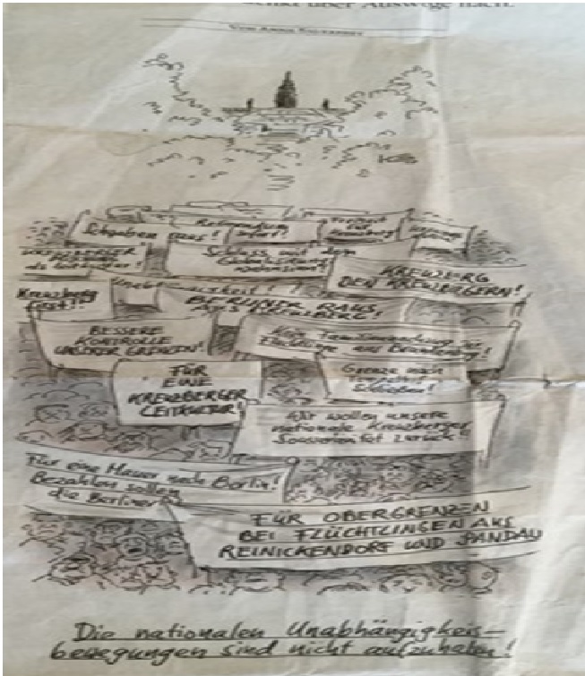 لەو کۆڕی یادەورییەی باسمان کرد، بەر لە هەمووان کۆنزەڤاتیڤە لیبەراڵەکان، لە نێوانیاندا زۆر یاساناس بەیەک گەیشتن، بە ئاشکرا هەستی پێ دەکرا، هەتا ئەمڕۆ لەدەستدانی کۆنترۆڵ، مۆتیڤی ناوەندی بزوێنەری ڕەخنەیە لە سیاسەتی کۆچبەرانی Angela Merkel. دا. ”تێشکانی دەوڵەت” بوو بەهۆی و دەبێت بە یەکێ لە خۆشەویسترین AfD-Hashtag #. توێژەرە پۆپۆلیستەکان دەڵێن،لەدەستدانی کۆنتڕۆڵ، مۆتیڤێکی بەهێزی بزاڤی پۆپۆلیستییە، لە ئێستادابە هۆی پەککەوتنی پاراستنی سنوورەوە. سنووری دەوڵەت، کولتوورە ـ ئیتنۆکەکان،دەبەسترێتەوە بە مەرامی سەروەرێتی ناسیونالیستەکانەوە.