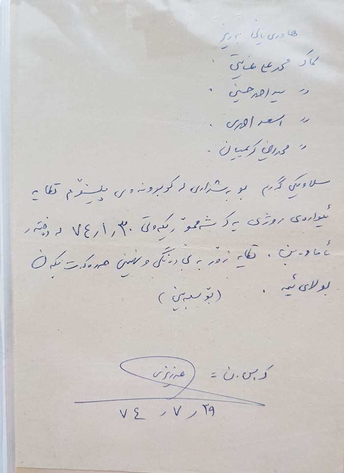 – لێرە جێ پەنجەی کەسێک دیارە بە ناوی بێهروز مەنوچێهری، کاری شۆفیری هەر سێ مەڵـبەندەکەی دەکرد ،لانکروزێرێک و تویوتاێێک و تراکتۆریکمان هەبو، جگە لە تراکتۆرەکە کە عەلی حسەین پوور شۆفیری بوو ئەویش داستانی خۆی هەیە،( لە بازیان پێشمەرگەکان شانۆیەکیان دروست کردوبوو ،هەر چەند هەموو ئەو ناو بە ناوە بە عەسکەری عێراقی تەنرابو ، سەدام حوکمی دەکرد،چوبوون نەخشی سەدام حسینیان دابو بەعەلی، لیاسی عەرەبیان لە بەر کردبوو ،عەگاڵیان لە سەری هاڵاندبوو،وەک سەدام حسین قسەی دەکرد و دەیوت* شیمیایی ئەوەشێنم کێم پێخۆش بێت دەی خنکێنم.* دو ماشێنەکەی دیکە بە پێێ پێویستی کارەکانیان بۆ هاتوو چووی نەفەرات و تەداروکات لە لایەن بێهروزەوە بە کار دەهێنران، و رۆژ و شەو بە وەخت و ناوەخت بە ڕیگاوە بوو، ئەو کاتانە هەموومان بە دایم لە خەتەری تیرۆری کۆماری ئیسلامی دابووین، لانی کەم بە پێی لیستە 243کەس لە حیزبی دیموکرات و سازمانەکانی دیکە تیرۆر کراون،کاری زۆر زەرورمان نەبوایە هاتو چووی شار و بەرەمان نەدەکرد،دوژمن نەناسراو بوو، ئیدارەی ئتلاعات پارەیان دەدا بە هێندێ خەڵکی نەفس نزم لەو شار و دێهاتانای باشوور کێ ێان پێخۆش بوایە بۆیان دەکوشتن،، بەڵام بێهروز بە هۆی کارەکەی دەبوو بە دایم ئەو مەترسیە زۆرە تەحەمول بکات.،،کەسیک جەرگی شێری نەبوایە ئەو شوغڵەی بە و خەتەرناکیە پێ جێبەجی نەدەکرا،هەر تاو نا تاوێک ماشینێکی حیزب تەقەی لێدەکرا، بەو حاڵەش زۆر کەس هەر رەخنەیان لێدەگرت ،دیارە کە کاری زۆرت کرد و هەر کەسە وشتێکی پێڕاسپادری بۆی جیبەجێ بکەی ،لەژێر پرتە و بۆڵەی خەڵکی دەرنایەی،بەڵام ئەو بێ گوێدانە قسەی ئەم و ئەو کاری خۆی دەکرد،هەتا بڵێێ قسە خۆش و خۆش مەجلیس بوو، قسەی خۆشیم زۆر لەلایە بەڵام بۆ ئەم مەجلیسە نابن،هەر ڕۆژە بە لایەک دا ، مل پێوەنێی ئەم شار و ئەو شار و نەزانی دوژمنت کێیە و لە کوێ تەقەت لێدەکرێ بە دەم خۆشە ، بە خۆشیەوە کاک بێهروز سەر حاڵ و زیندوە و لە وڵاتی سوید دەژی، لەشی ساخ و تەمەنی دریژی بۆ بە ئاوات دەخوازم،