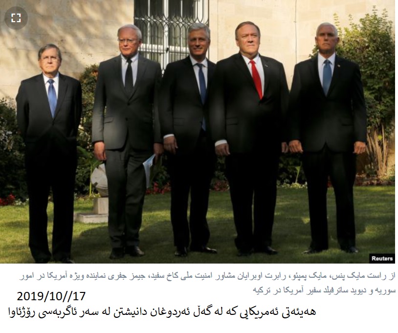 لهمبارهشهوه مایك پێنس، جێگری سهرۆكی ئهمهریكا رایگهیاند، ”ئهوهی لهسهری رێككهوتوون، خزمهتی بهرژهوهندی كورد له سووریا دهكات و ناوچهیهكی ئارامی درێژ دروست دهكات”.