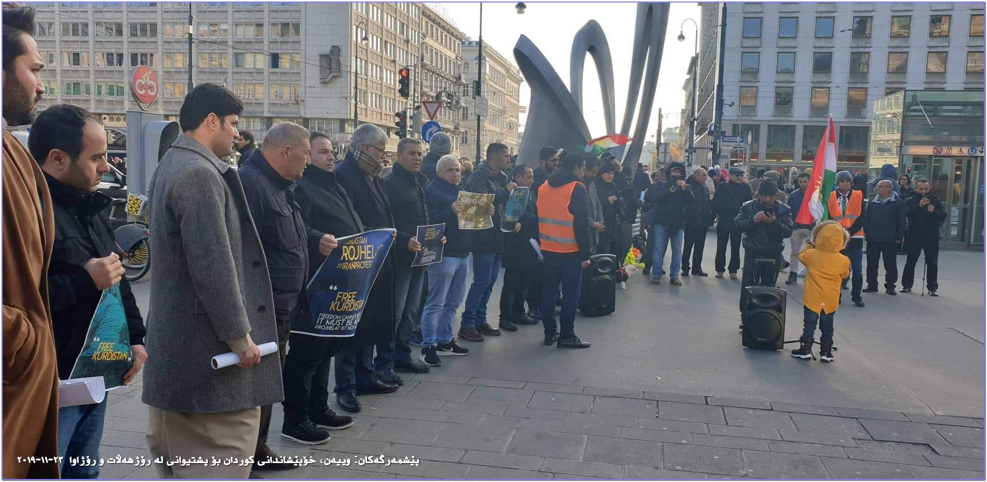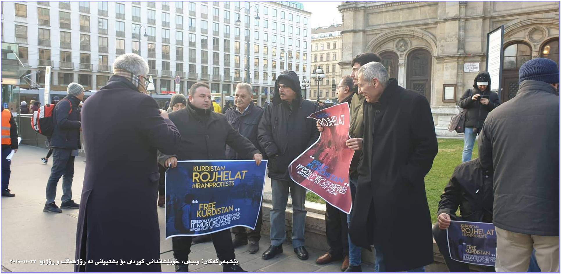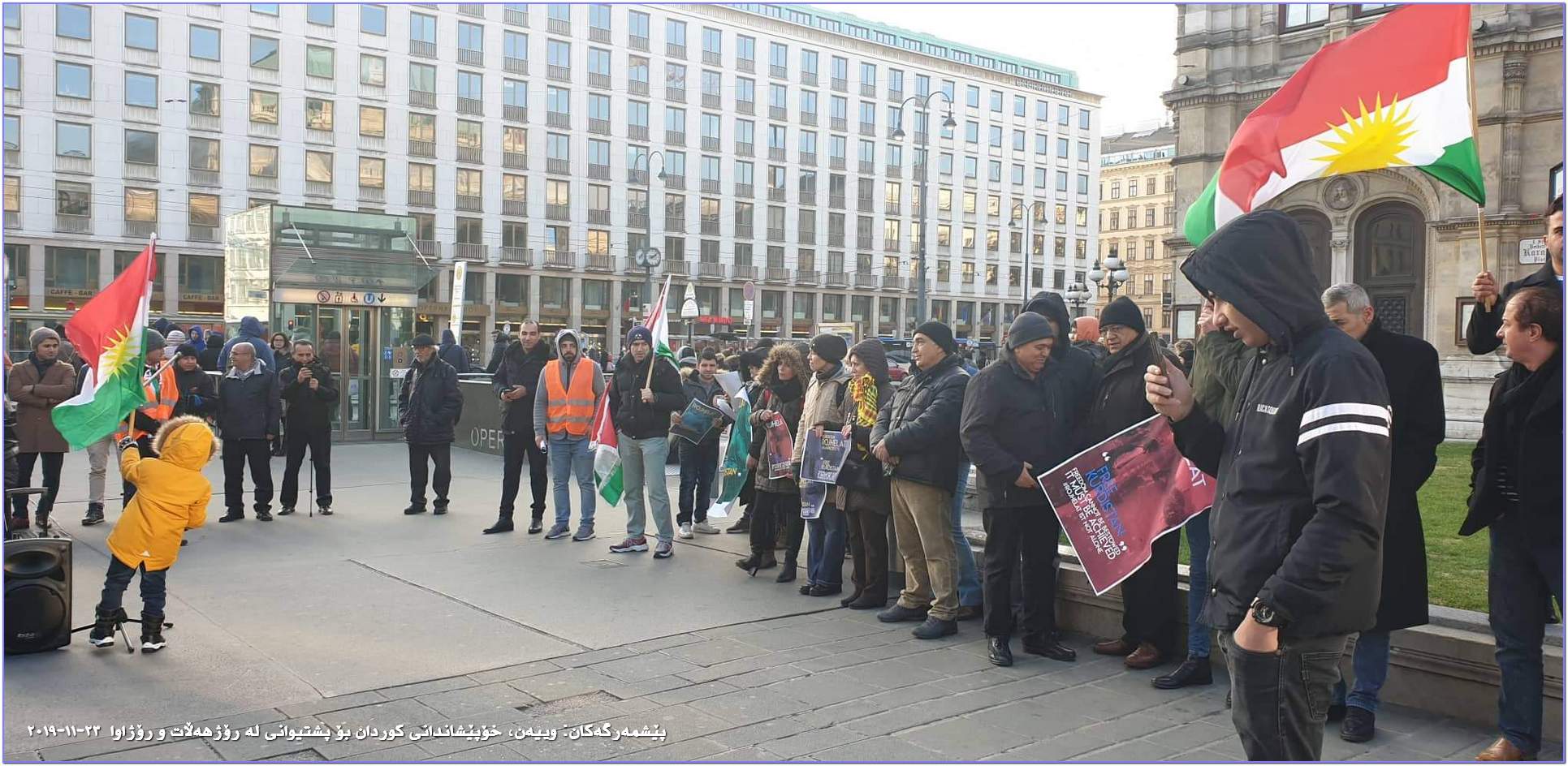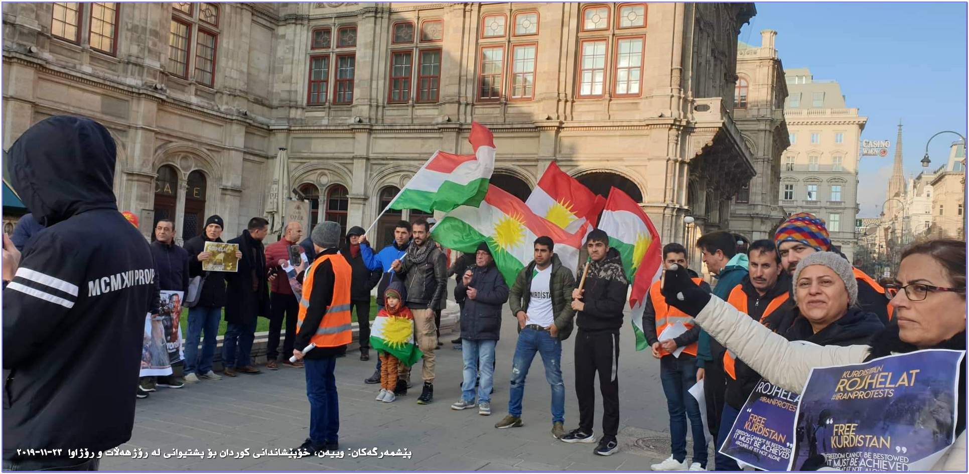 ڕۆژی شەممە ڕێکەوتی ٢٣.١١.٢٠١٩ لە لایەن کومیتەی پشتیوانی کوردستان پێک هاتوو لە حیزب و ڕێکخراوە کوردستانیەکانی هەر چوار بەشی کوردستان خۆپێشاندانێکی لە بەر دەرکی ئوپەرای شاری وییەن بۆ پشتیوانی لە ڕاپەڕینی ڕۆژهەڵاتی کوردستان دژ بە کۆماری ئیسلامی ئێران پێک هات.