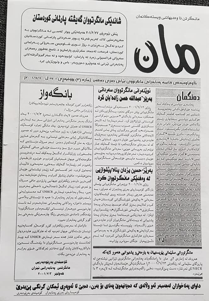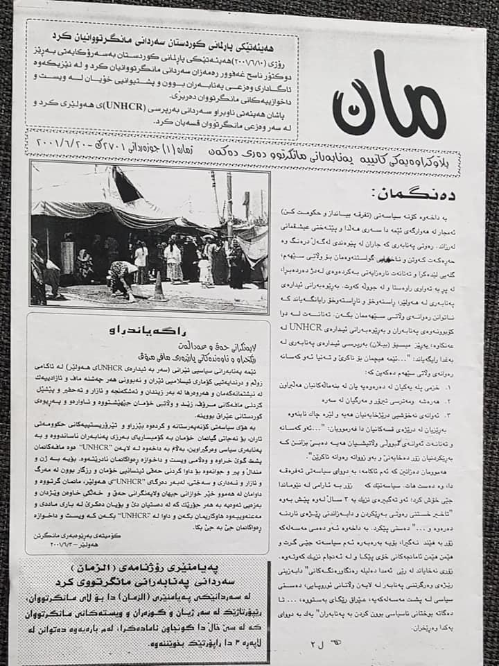 ئیدارەی یوئن لە یەکەم ڕۆژەوە تا ئاخر(3.6.2001) – (15.10.2001) هەر لە سەر یەک قسە بوون دەیانگوت لە چوار چێوەی سەڵاحیەتی ئیمەدا نیە لەو سەهمیەی بۆمان دیاریکراوە ناتوانین زیاتر بەڕێ بکەین، بە بەغدا و کۆمیساریای پەنابەران لە ژنێڤ مەربووتە. ئاخر قسە و پێشنیاریان ئەوە بوو پەنابەران ڕوو بکەنە تورکیە ئەگەر دەیانەوێ لەو وەزعە دەر باز بن.