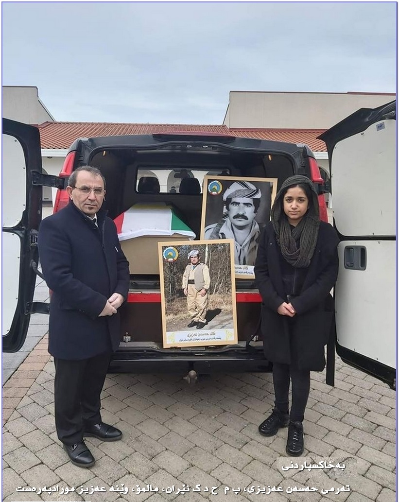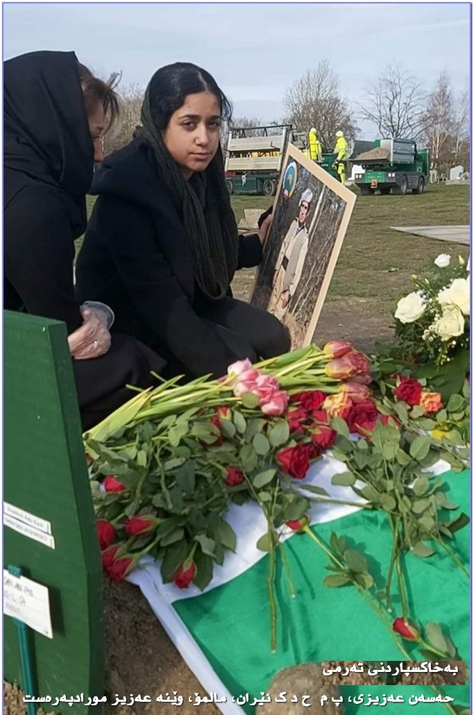 رۆژی سێ شەممە رێکەوتی ١٧/٣/٢٠٢٠ تەرمی پێشمەرگەی دیرینی حیزبی دێموکراتی کوردستانی ئێران حەسەن عەزیزی لە شاری مالمۆی وڵاتی سوئێد بە بەشداریی هەردوو منداڵە چاوگەشەکەی : تینای 14 ساڵان و ئاراسی 12 ساڵان و هەر وەها بە بەشداریی ژمارەیەکی دیاری کراو لە خزمان و هاورێ و هاو سەنگەرانی بەخال سێپێردرا، لەو مەراسیمەدا کاک مەولوود عەبدیلزادە بەرپرسی کۆمیتەی گشتیی حیزب لە وڵاتی سوئێد وێڕای سوپاس و قەدردانی لە بەشداربووانی مەراسیمەکە، کورتەیەک لە ژیانی پڕ سەروەریی هاورێی کۆچکردوو کاک حەسەن بۆ بەشدار بووان باس کرد و هەر وەها پڕسە و هاو غەمیی کۆمیتەی گەیاندە منداڵەکان و خزمانی بەشدار لەو مەراسیمەدا، و تاجەگوڵینەی ڕێز و وەفای لە سەر گڵکۆی کاک حەسەن دانا.