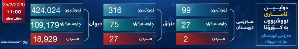 ڤایرۆسی کۆرۆنا (کۆڤـید ـ نـۆزدە) لە زۆربەی وڵاتانی جیهانـدا بڵاوبۆتەوە، بـووە بە پەتایەکی ترسناک و کوشندەی جیهانی و ژمارەی تووشبووان و مردووان رۆژ لە دوای رۆژ، لە زیادبوون و هەڵکشاندایە،