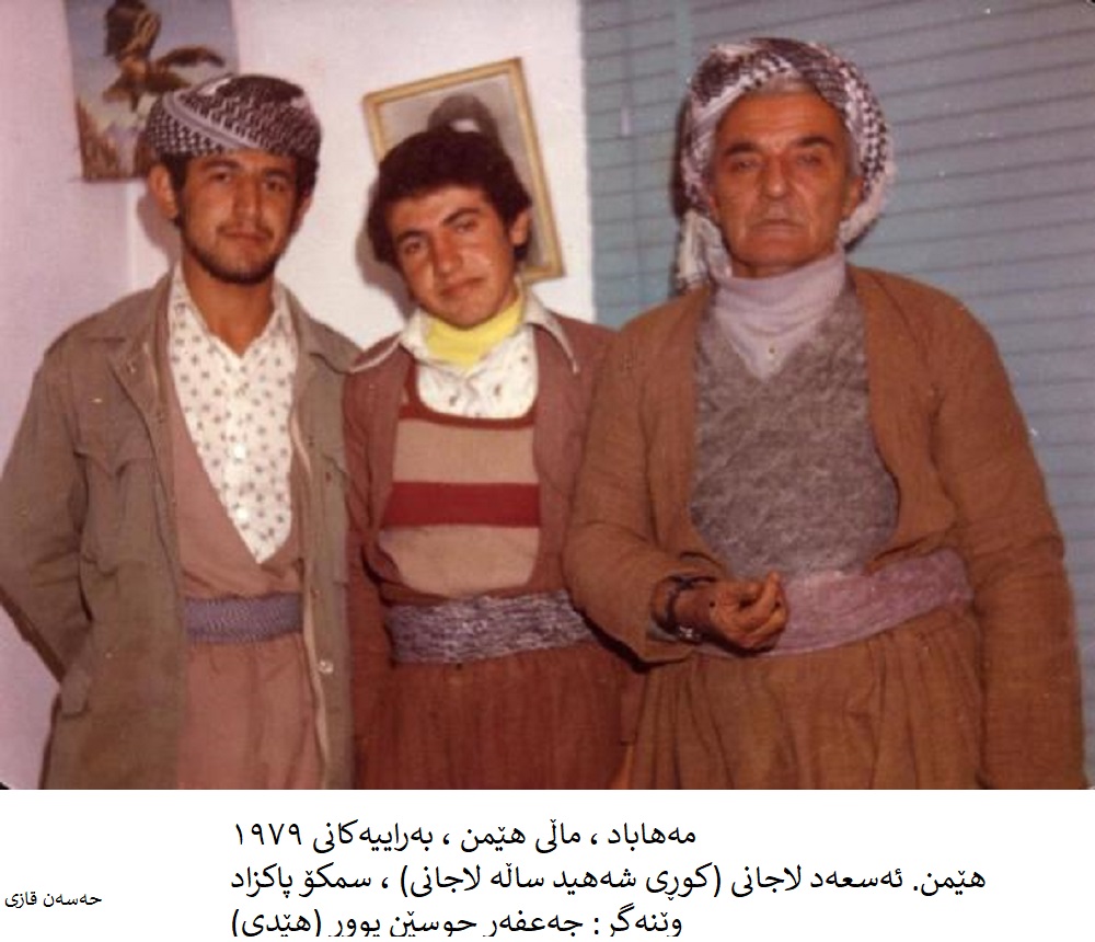 وینەی شەشەم لە ڕاستەوە : هێمن ، ئەسعەد لاجانی (کوڕی شەهید ساڵە لاجانی کە لەگەڵ هێمن لە لە گەرمێنەوە هاتبووەوە کوێستان) ، سمکۆ پاکزاد