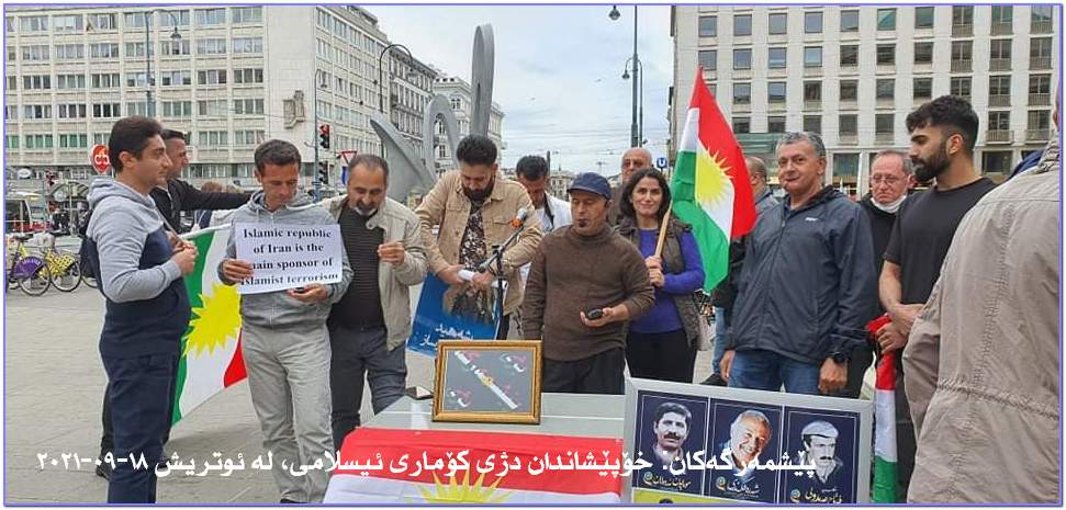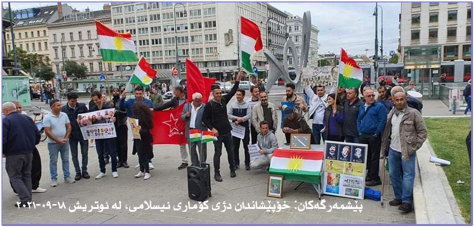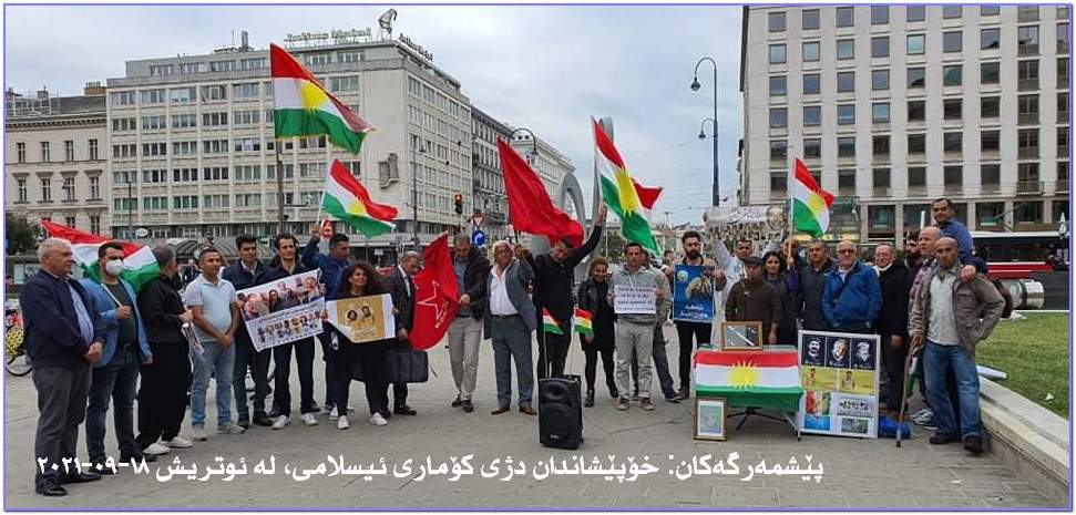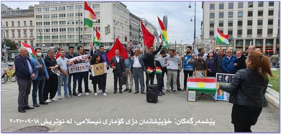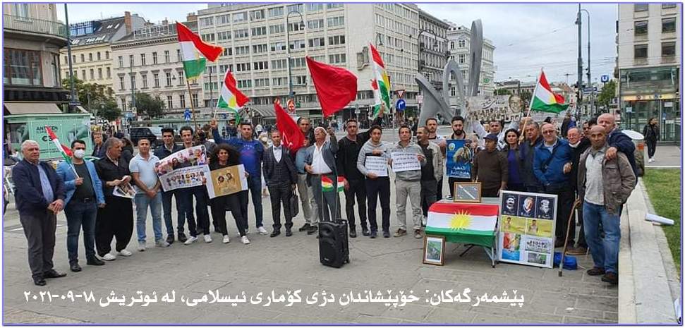 ئاگر تێبەردانی باخات و لێرەوارەکانی ناوچە سنووریەکانی باشووری کوردستان بە مووشک، فڕۆکەی بێ فڕۆکەوان و فڕۆکەی شەڕکەر، تیرۆری دوکتور سادقی شەرەفکەندی و هاوڕێیانی لە مانگی ٩ی ساڵی ١٩٩٢ لە شاری بەرلینی ئاڵمان وڕێز گرتن لە شەهیدانی سەربەرزی ئەو کارەساتە و هەروەها شەرمەزار کردنی مووشەکبارانی بنکەی ناوەندی حیزبی دیموکرات و شەهید و بریندارکردنی دەیان خەباتگێڕی بە ئەزموون و ڕێز گرتن لە شەهیدانی ئەو جینایەتە سامناکەی کۆماری پەت و سێدارە هەر لەو مانگەدا و هەروەها پێشێل کردنی مافی مرۆڤ لە لایەن کۆماری ئیسلامی ئێران و گرتن ،ئیعدام و لە سێدارەدانی شۆڕشگێڕانی کورد گردبوونەوەیەک لە بەردەم ئوپەرای شاری ویەن بە بەشداری هاووڵاتیانی کوردی نیشتەجێی وڵاتی ئوتریش پێک هات.