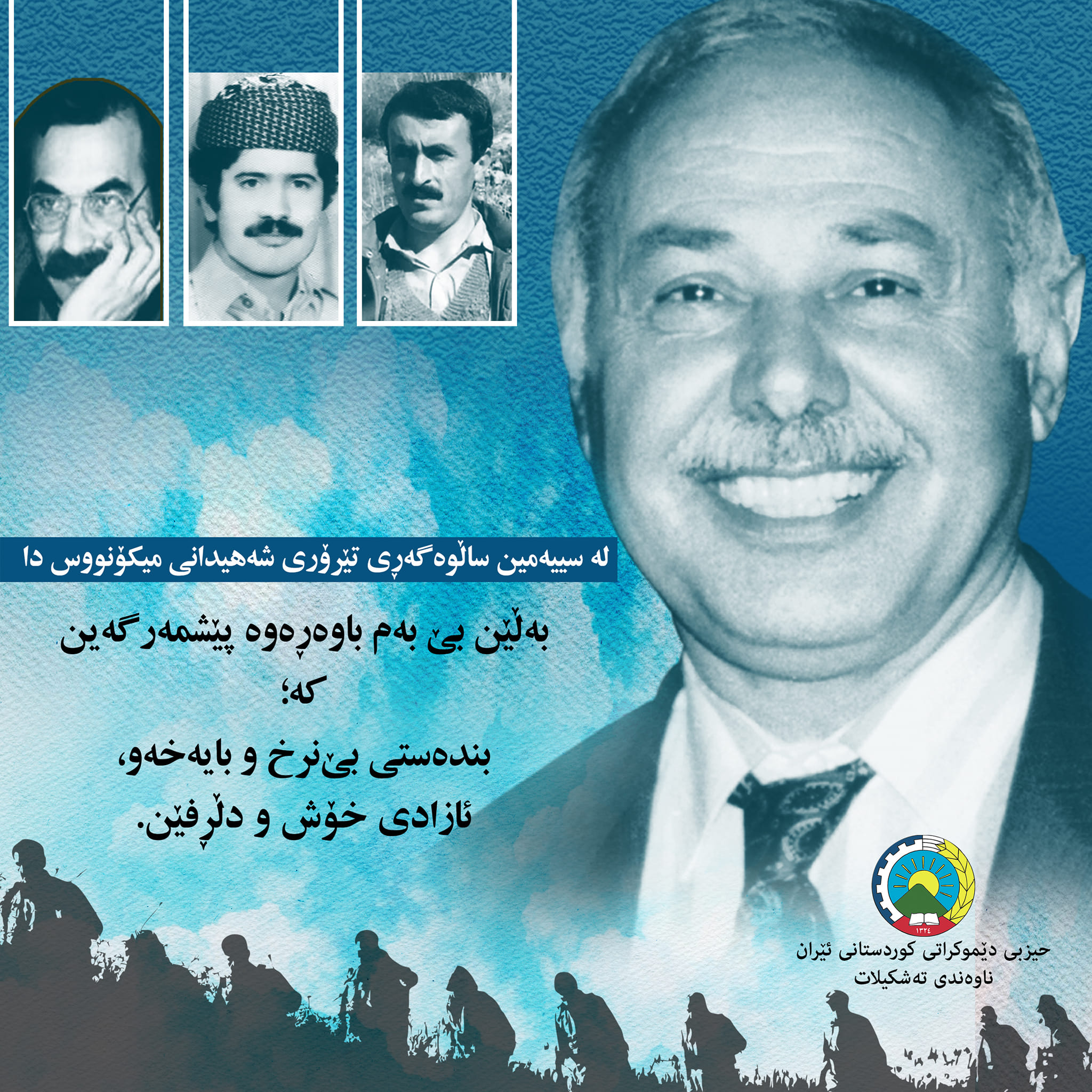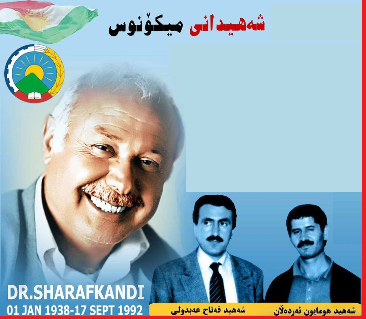 ٣٣ ساڵ بەر لە ئێستا و لە ٢٦ی خەرمانانی ساڵی ١٣٧١ی هەتاویدا، دوکتور سادق شەڕەفکەندی، سکرتێری گشتیی حیزبی دێموکراتی کوردستانی ئێران، وێڕای کاک فەتاح عەبدولی، ئەندامی کۆمیتەی ناوەندی و نوێنەری حیزب لە دەرەوەی وڵات، کاک هومایون ئەردەڵان، نوێنەری حیزب لە وڵاتی ئاڵمان و نووری دێهکوردی، دۆستی حیزب، بە پیلانی پێشوەختە و پلانبۆداڕێژراوی کۆماری ئیسلامیی ئێران لە شاری بێرلین تێرۆر کران.