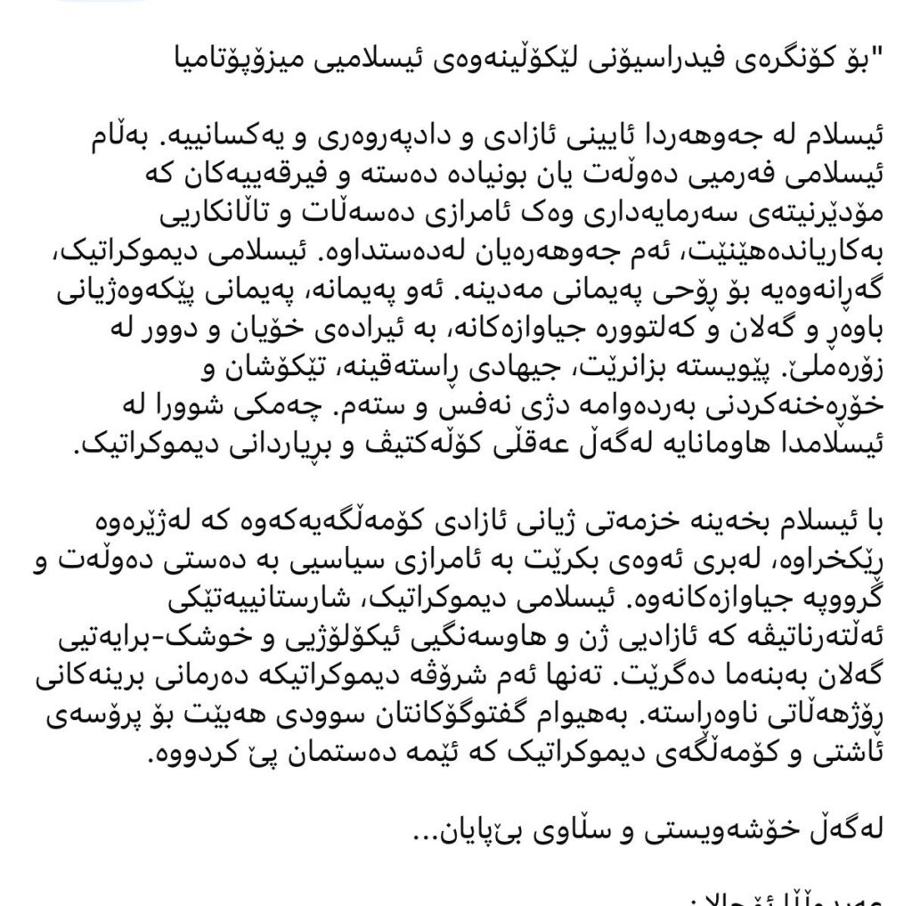 لەوە گرنگتر، ئەوەیە بۆچی «ئیسلامی دیموکراتیک»؟ کێ قازانجی لێدەکات؟ ئەم زاراوەیە کە لە زمان ئیلیتێکی کوردەوە، بە میدیایی دەکرێت و وەک داھێنانێکی گەوەرەی تری، لەرێی پرۆپاگەندایەکی میدیایی و رێکخراوەییەوە بڵاودەکرێتەوە، پێوەندی بەکام مافی پێشێلکراوی کوردەوە ھەیە؟ زمان، کولتوور؟ دەسەڵاتێکی ھاوشان وەک موسوڵمانی تورک، عەرەب، فارس؟ خاوەن بوون لە سروشت، ژینگە و سەرچاوەکان؟ دەستراگەیشتنی ھاوشان بە تریبوونە جیھانییەکان؟